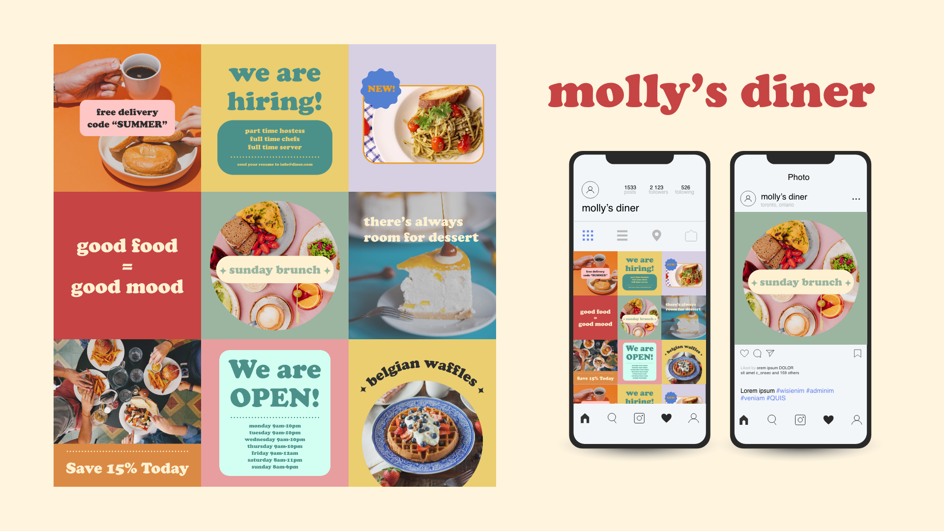 Instagram Feed Mock-Up Design for "Molly's Diner"